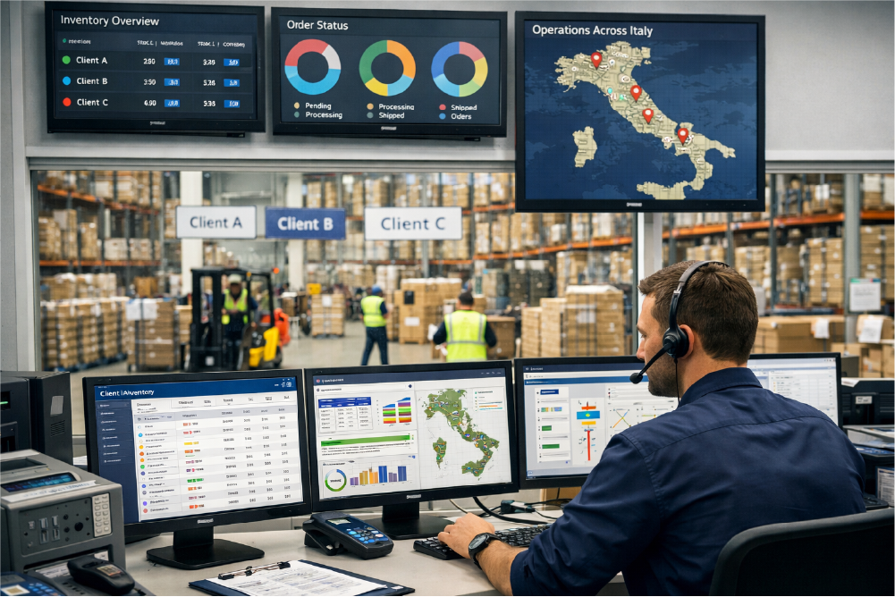 Manage inventory, orders, and workflows for multiple clients from a single WMS while operating shared warehouse environments across Italy.